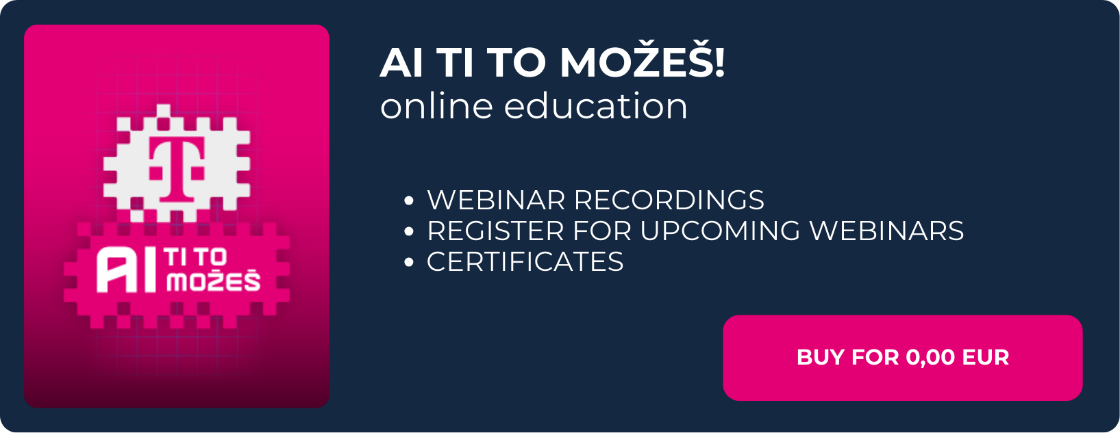 “AI ti to možeš” program includes short informative-educational video lessons with practical tips on using artificial intelligence, as well as interactive webinars tailored to different levels of prior knowledge. Participants can learn at their own pace, develop new skills, and gradually progress through content that connects theory and practice. Through carefully designed online courses, participants will deepen their understanding of artificial intelligence and gain the knowledge needed to apply it in everyday life and work.