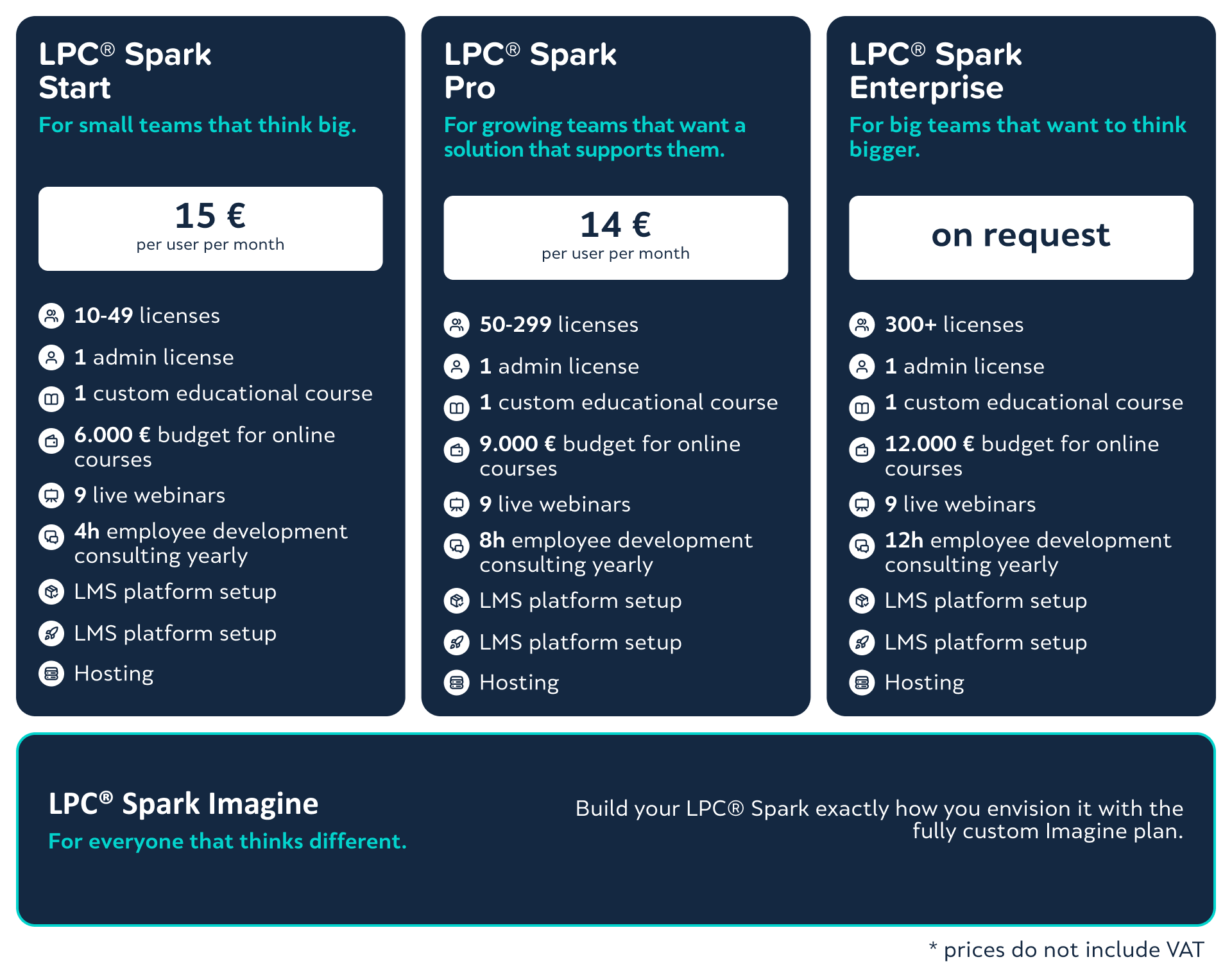 Every LPC® Spark plan is designed for companies of different sizes with a customizable plan available to the ones that want a fully tailored solution.