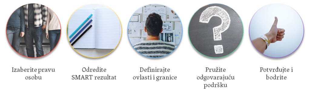 Iako je vještina delegiranja prilično jednostavna, to svakako ne znači da je ujedno i laka za provođenje. Proces uspješnog delegiranja sastoji se od 5 jednostavnih koraka: